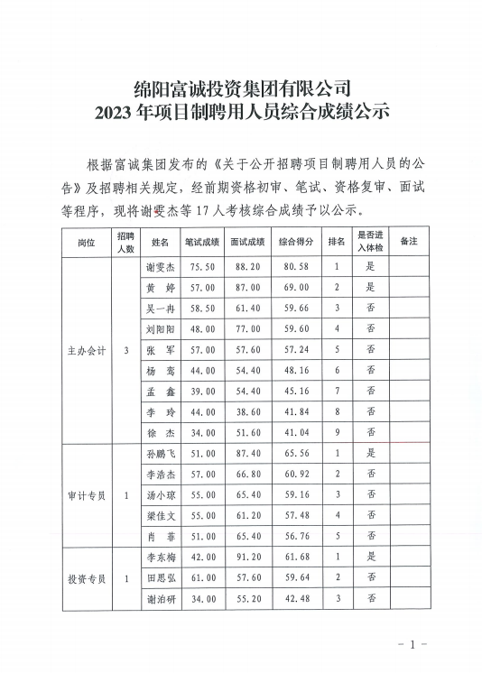 伟德国际victor1946集团2023年项目制聘用人员综合成绩公示