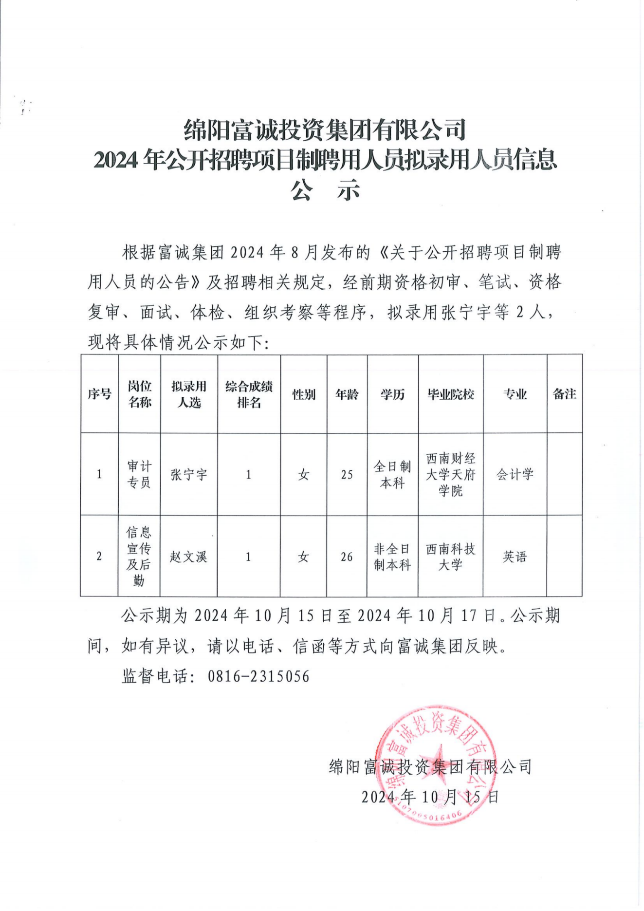 伟德国际victor19462024年公开招聘项目制聘用人员拟录用人员信息公示