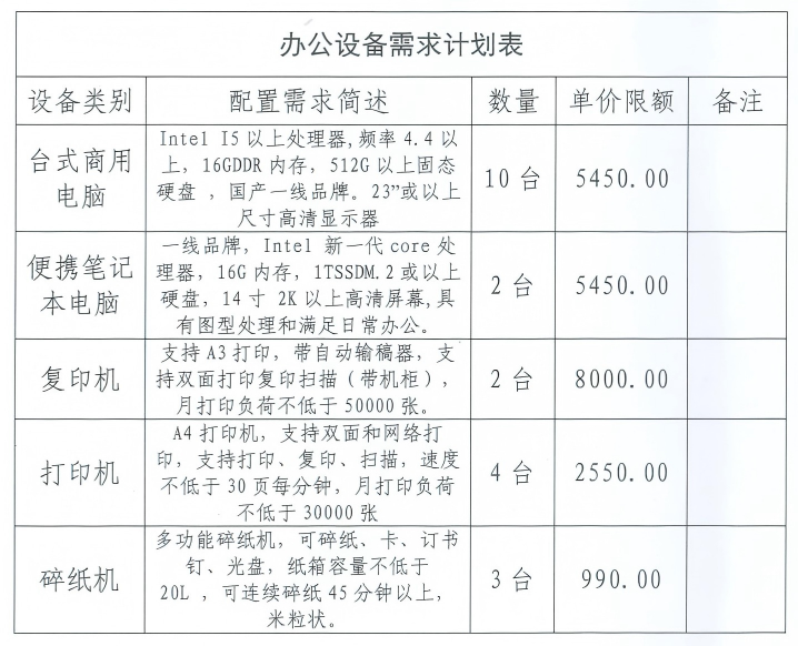(1)要求设备均为品牌整装设备,单价不得超出对应限额;