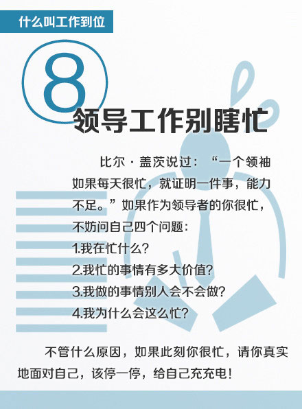 历史上所有伟大的人物,政党以及如今伟大的商业领袖,有哪位整天忙着做事的?这些领袖每天干的最多的事就是学习成长,把握方向,分析市场,战略布局,制定方法。