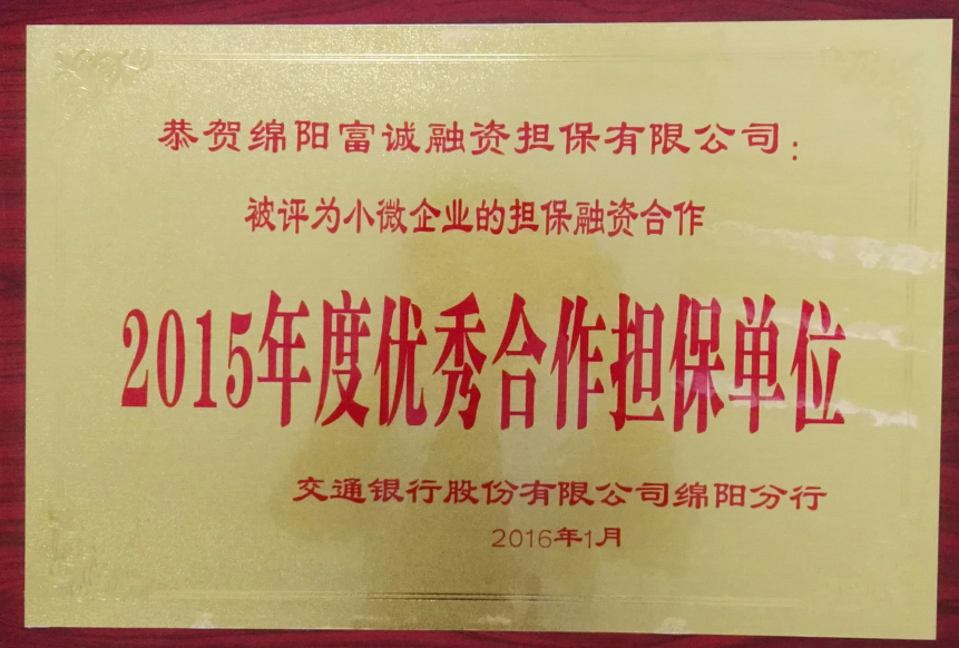 2015年度优秀合作担保单位