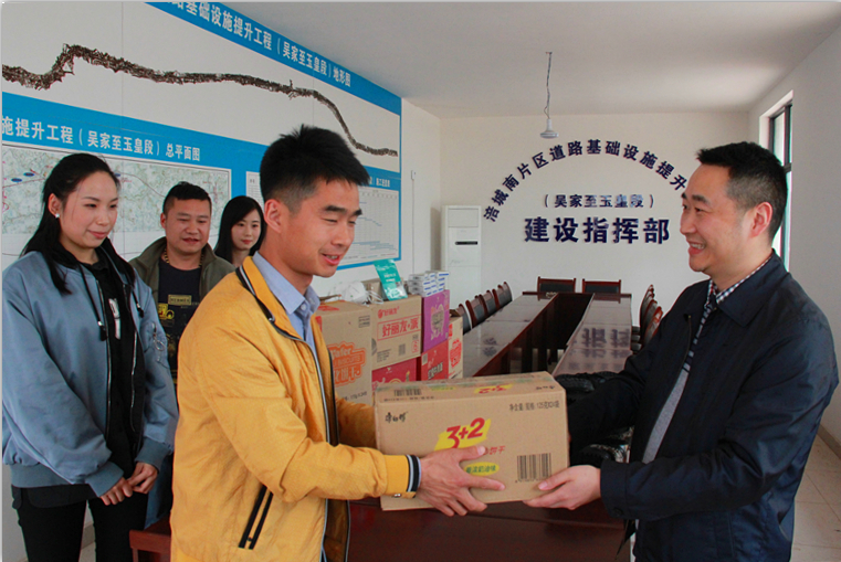 4月5日,清明“小长假”第一天,集团副总经理补成逊率队来到绵中路建设现场,慰问参与建设一线的职工。集团副总经理何刚代表一线职工接受慰问。补成逊一行首先来到项目部办公室,与假日期间还在绵中路奋战的职工交流工作和生活情况,为他们送上饼干、方便面等食品和藿香正气液、口罩、胶鞋等夏日用品。补成逊说,集团领导和同事们都很关心大家,你们放弃假日与家人团聚的大好时光,坚守工作岗位,在工作一线很辛苦,一定要好好保重身体。同时,他要求综合部一定要全力保障好后勤工作,为工作在一线的职工解除后顾之忧。何刚代表参与绵中路建设的各位职工表示,将继续发扬集团特别能吃苦的优良传统,按时保质保量完成建设任务。随后,补成逊一行…… [更多]